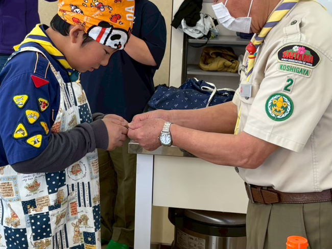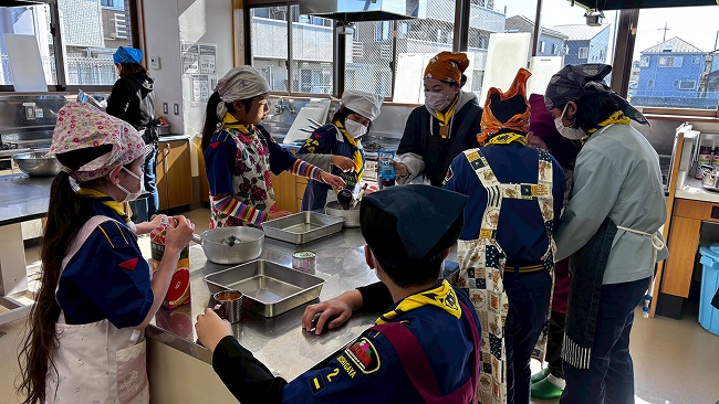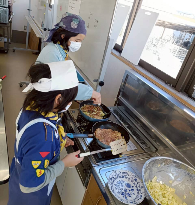 3月9日、ボーイスカウト越谷第2団カブ隊は、お好み焼き&寒天フルーツゼリー作りとお別れ会①を行いました。