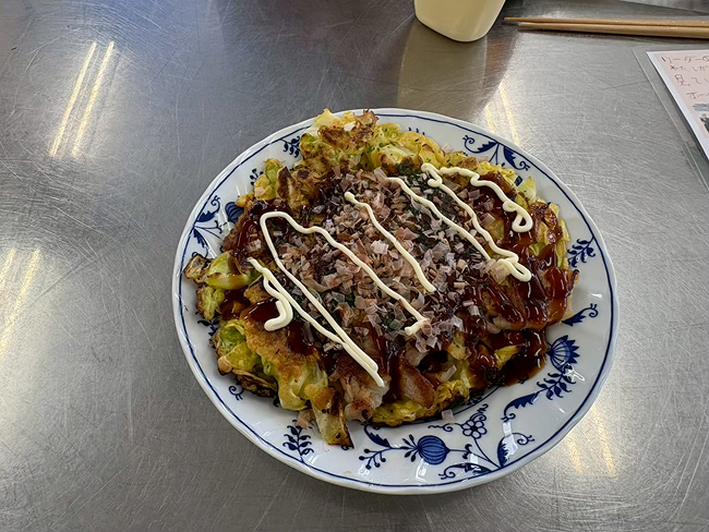 キャベツたっぷりの美味しいお好み焼きが完成。